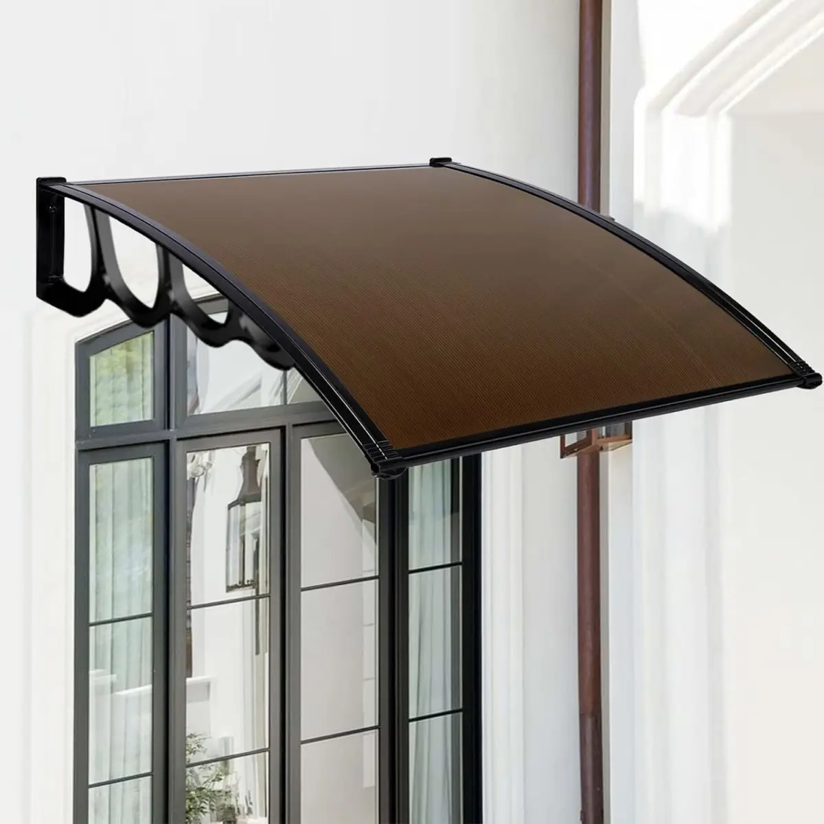 Този поликарбонатен навес може да бъде използван като навес над входна врата, прозорец, гише, над малка тераса и други външни пространства.