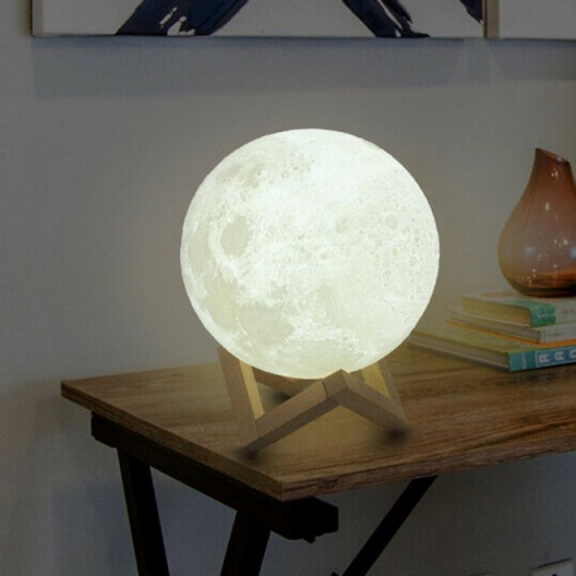 Тази нощна лампа свети в различни цветове. С реалистичната си 3D форма копира истинския релеф на Луната, и лампата