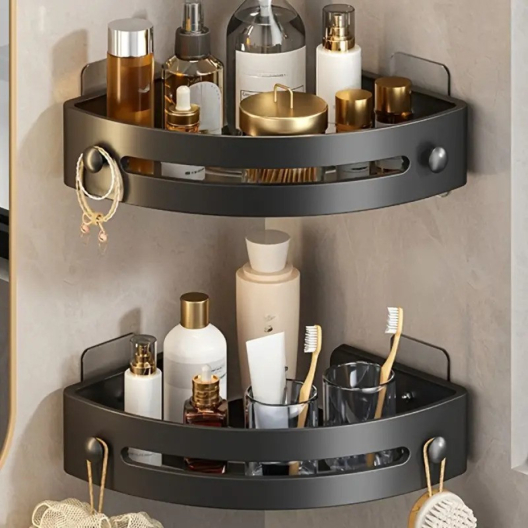 Ъгловият рафт е изработен от пластмаса, осигуряващ и екологичност и безвредност.Не избледнява и може да издържи до 10 кг без опасност от падане на предмети.