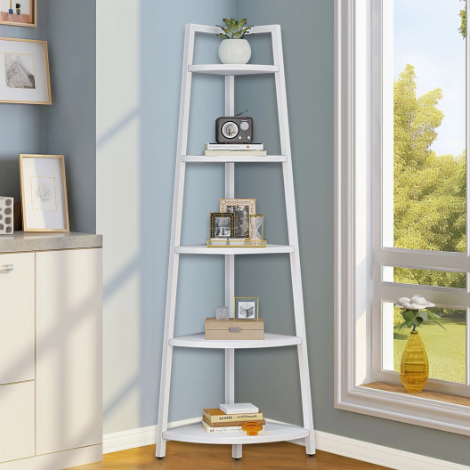 Ъглова етажерка с 5 рафта, бяла - 106 см.