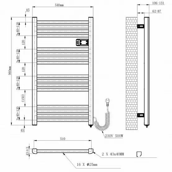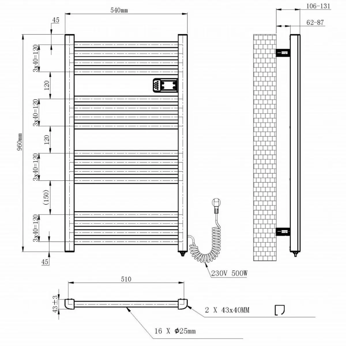 Алуминиева електрическа лира Cascada 540 x 960, Бяла, 500 W