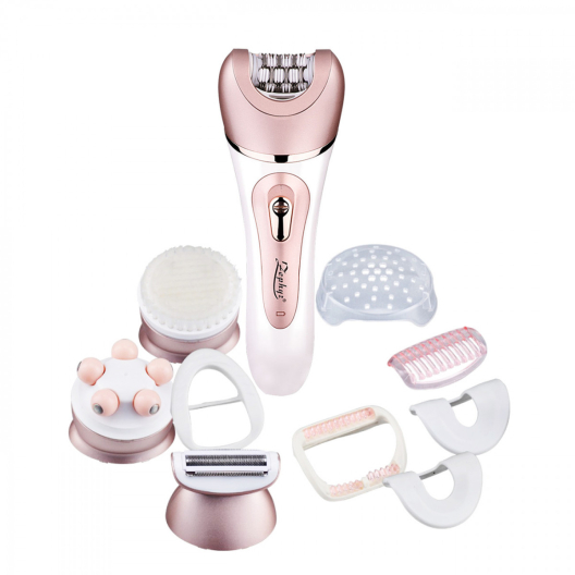 - 6 приставки: 1 тример за бикини зоната, 1 защитен капак за масаж, 1 масажна система, 2 приставки за чувствителни и деликатни зони и капачка за опъване на кожата