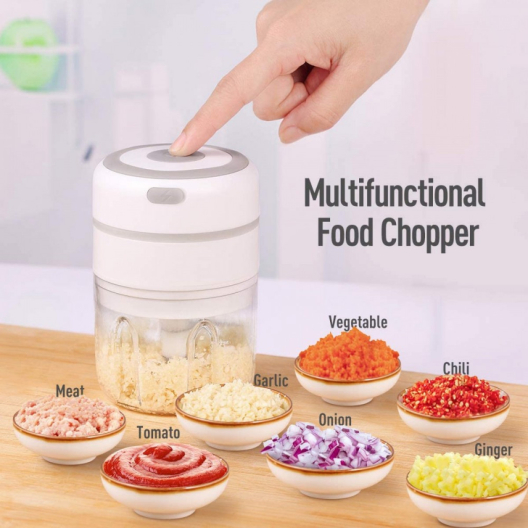 Ако често режете хранителни продукти на ръка, ще обикнете мини чопъра много бързо. Освен симпатичния и стилен дизайн, този мини чопър има висока производителност, с която гарантира правилно нарязване на чушки, домати, зеле, маруля, магданоз, ядки, чесън, лук и много други съставки. С мини чопъра можете да приготвите песто, салца и различни сосове и салати по-бързо и по-лесно. С капацитет на контейнера до 250мл може да напълните чопъра с различни вкусни храни от домати и лук до чушки и гъби и с едно натискане на бутона да ги приведете в нужния за готвене вид. Създаден за да ви улеснява, той бързо ще раздроби или нареже само с натискането на един бутон. Без сложни дисплеи и бутони, този семпъл чопър е лесен за използване.