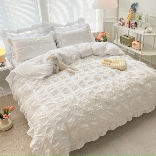 Предлагаме ви нашия спален комплект със специална материя от крепон. Тази материя има слой, който носи уникално усещане за елегантност. Тя е мека и набръчкана. Мек на допир и мек на допир, можете да го използвате дълго време през цялата година