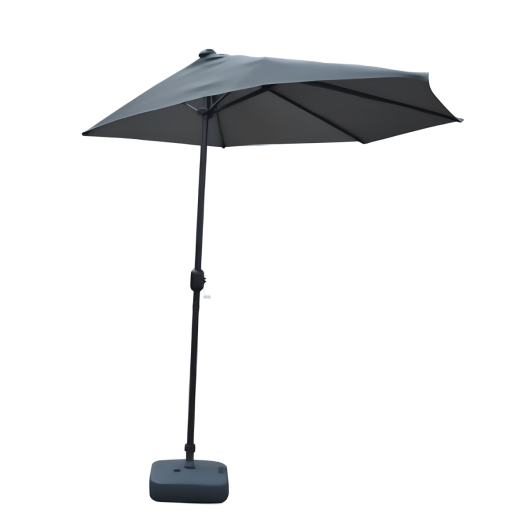 Този сив полукръгъл чадър с манивела е създаден с мисъл за максимално удобство и функционалност. Неговата компактна форма го прави идеален за места с ограничено пространство, като същевременно осигурява достатъчно сянка, за да се наслаждавате на открито дори в най-горещите дни.