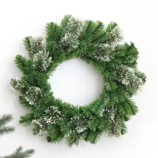 Този елегантен коледен венец е перфектното допълнение към вашата празнична декорация, съчетавайки традиция и стил по начин, който ще впечатли всеки гост. Зелените заснежени клонки, добавят нотка на елегантност и изисканост, която е характерна за традиционния коледен декор.