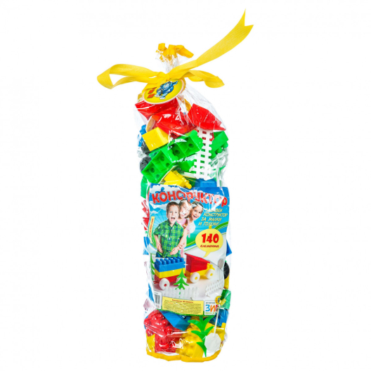 Констуктор с дребни елементи в ярки цветове – синьо, зелено, червено, бяло и жълто.