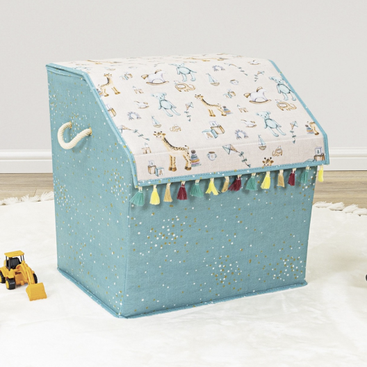 С размери 40x38x44 см., този кош предлага достатъчно пространство за съхранение на играчки, дрехи, книги и дори домашни текстилни изделия. Неговият капак осигурява допълнителна защита и помага за поддържането на домашния ред.