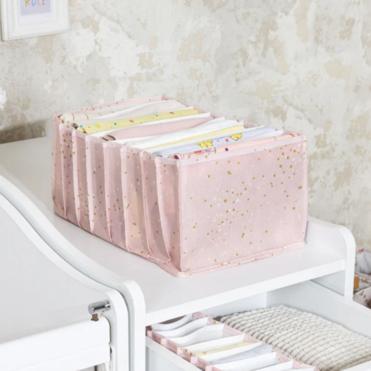 Този органайзер е специално създаден, за да помогне на родителите да подредят и организират всички необходими неща за своето бебе в детската стая. Със своите 8 отделения, той предлага удобно и практично решение за съхранение на бебешки пелени, дрехи, играчки и други важни бебешки аксесоари.