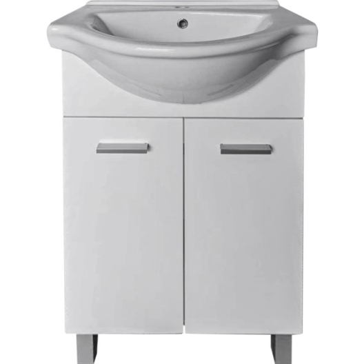 Върху шкафа е разположен керамичен умивалник, който е не само красив, но и изключително практичен. С размери 55х41.5х19 см., умивалникът предоставя достатъчно пространство за удобна употреба, докато гладката му повърхност улеснява почистването и поддръжката.