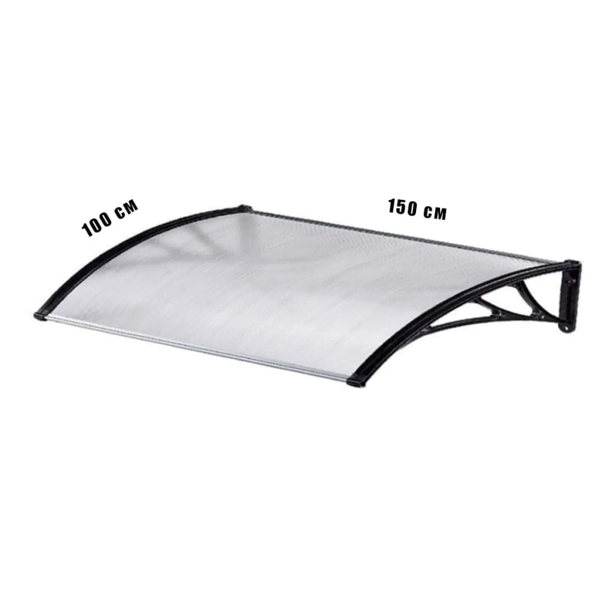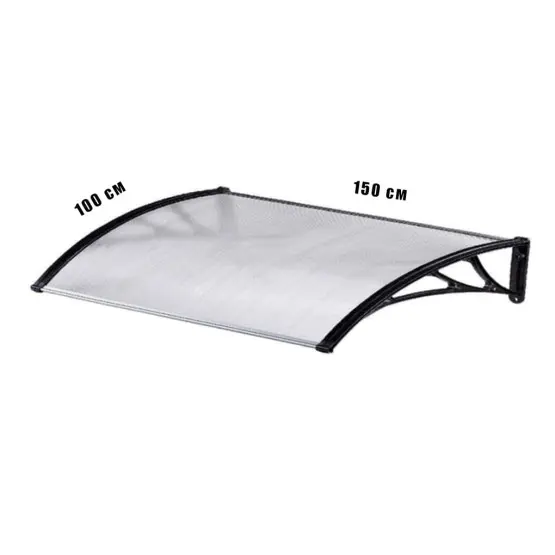 150 х 100 см Прозрачен Поликарбонатен навес козирка, черен държач