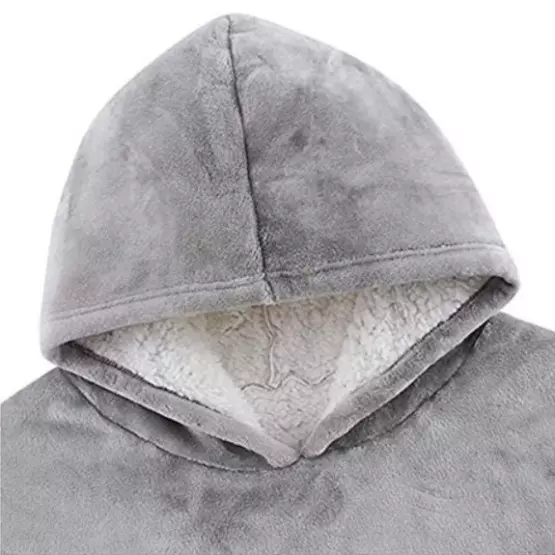 Детско пухкаво одеяло-суичър с ръкави и качулка - Сиво