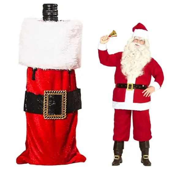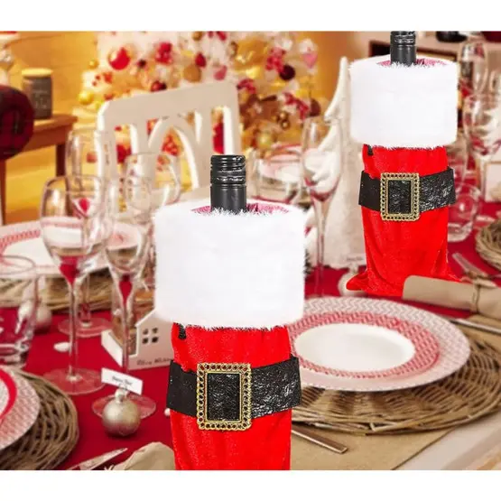 Коледен калъф за бутилка с колана на Дядо Коледа, 40 х 14 см
