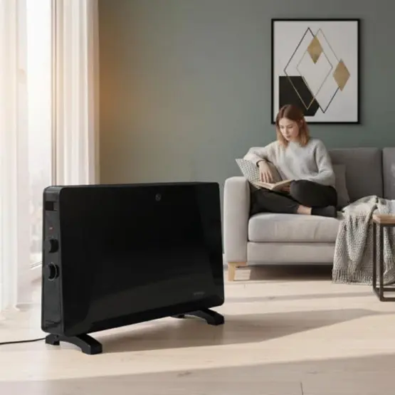 Конвектор Rosberg R51974E, 2500W, 3 степени, Термостат, Автом. изключване, Черен