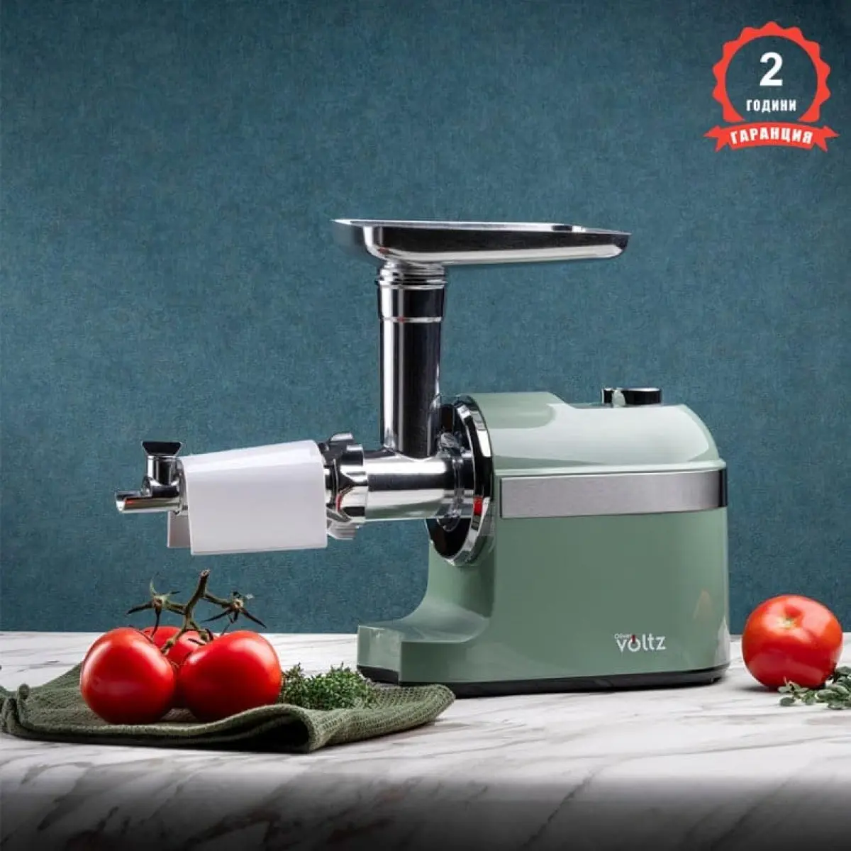 Месомелачка с приставка за домати Oliver Voltz OV51991F, 1800W, Аксесоар за колбаси, Зелен
