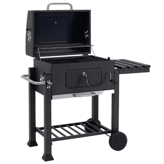 Барбекю на въглища с чугунена плоча, черен мат