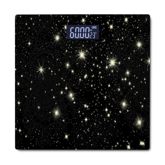 Електронен кантар Rosberg R51650G, до 180 кг, LCD дисплей, 2 x AAA батерии, черен/звезди