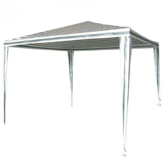 Полиетиленова шатра с размер 3 на 3 метра в бял и зелен цвят. Икономично и практично решение за двора и градината. Височината в центъра е 2,5 метра.