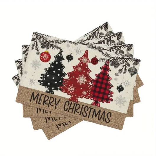 Съчетайте практичност и елегантност с комплекта от 4 броя коледни подложки за маса в дизайн „Елхи“! Тези подложки са създадени, за да донесат свежест и красота на вашата маса, като в същото време я предпазват от ежедневни следи и петна. Подходящи както за празнични събирания, така и за ежедневна употреба, тези подложки ще направят всеки повод специален.