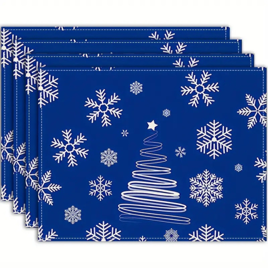 Комплект 4 броя сини подложки за маса - Малки снежинки, 30x45 см.