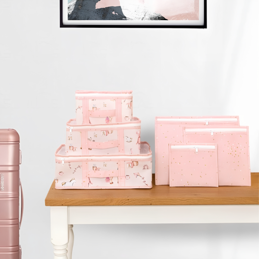 Включените в комплекта 6 органайзера с различни размери ви позволяват да подредите чистите дрехи, бельото и козметиката на децата по систематичен начин. Всеки органайзер е специално проектиран, за да ви помогне лесно да разграничавате и намирате различните предмети.