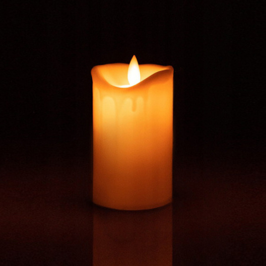 Свещта е направена да изглежда като капещ восък и има имитация на движещ се пламък. Перфектна е за декорация на събития, сватби, концерти, за декориране на коледната трапеза или Хелоуин.