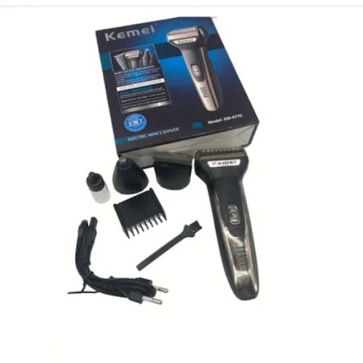 Представяме Ви Kemei KM-6776 машинка за бръснене и подстригване за мъже, която разполага с 3 накрайника – бръснене, подстригване и почистване на космите от носа и ушите.