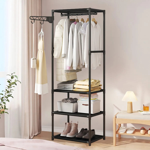 Метална етажерка със закачалки и 3 рафта за обувки и вещи