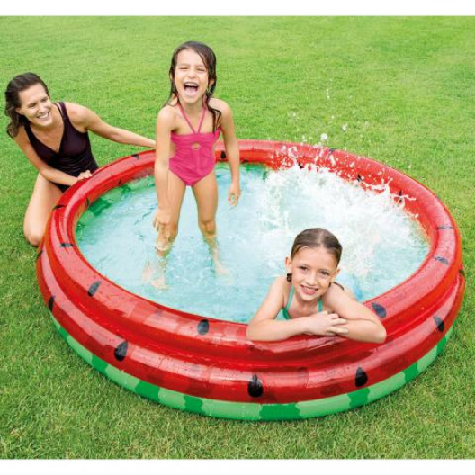 Със своя свеж летен дизайн, басейнът привлича вниманието на малки и големи. Той е декориран с реалистичен принт диня, който веднага създава усещане за лятна прохлада и радост. Ярките цветове и детайлите на принта правят басейна не само забавен, но и стилен аксесоар за всяка градина или двор.