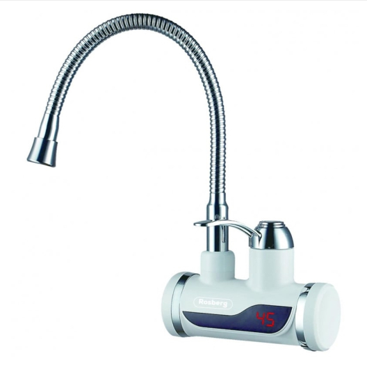 Нагревател за вода с гъвкав чучур Rosberg R57100C, С дисплей, До 60C, За стена, Бял