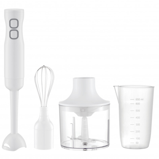 Пасатор с чопър и бъркалка Rosberg R51112MC, 400W, 650 мл, 2 скорости, бял
