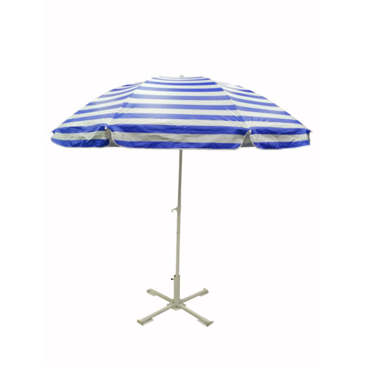 Плажен чадър със сребристо покритие на синьо/бяло райе - ø240 см.
