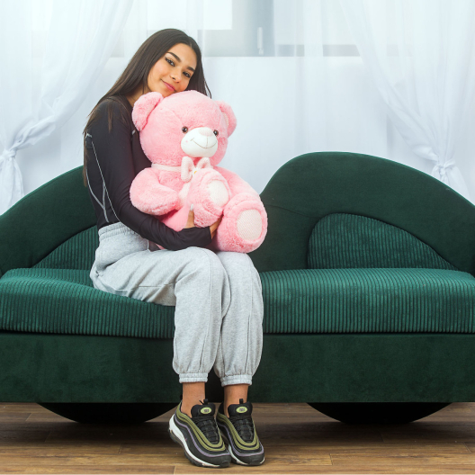 Супер мекото плюшено мече е много гушкащо и е направено от висококачествени, устойчиви на алергии материали за Вас и Вашето семейство. Нашето Розово плюшено мече поставя най-високите стандарти за изкуствена кожа, пълнеж и естествени тъкани, за да гарантираме, че имаме най-меката и пухкава плюшена играчка.