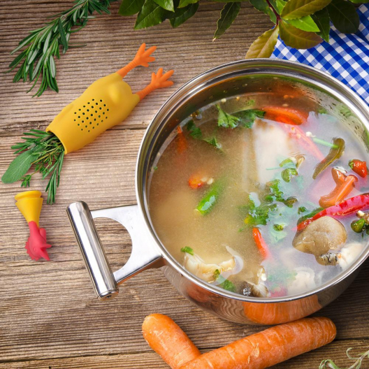 Напълнете LE CROCK COQ с любимите си билки и подправки и я поставете в тенджерата със супичка или яхния.