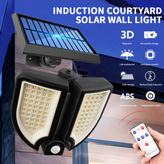 Водоустойчива солартна лампа със сензор и дистанционно/ 90Led за стена.