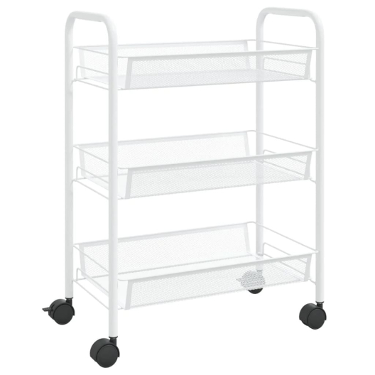 Стелажът на колела с 3 нива в бял цвят е компактно, мобилно и практично решение за подредба и съхранение на вещи в дома, офиса, банята или кухнята. Лесен за преместване благодарение на колелцата си, той се адаптира към различни пространства и нужди - от организиране на козметика, кутии и аксесоари до помощен шкаф за малки уреди или пособия.