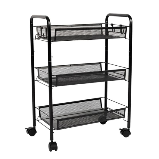 Стелажът на колела с 3 нива в черен цвят е компактно, мобилно и практично решение за подредба и съхранение на вещи в дома, офиса, банята или кухнята. Лесен за преместване благодарение на колелцата си, той се адаптира към различни пространства и нужди - от организиране на козметика, кутии и аксесоари до помощен шкаф за малки уреди или пособия.