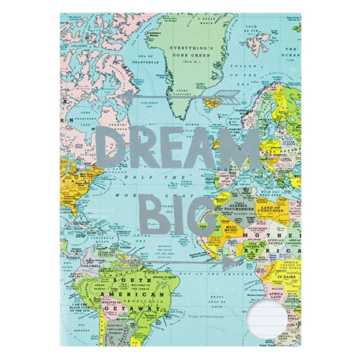 Тетрадка с меки корици, A5, широки редове, 80 листа - Световна карта