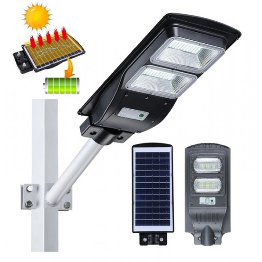 Уличната соларна лампа може да свети в продължение на 10 часа при пълен заряд. Разполага вграден фотоволтаичен панел, който захранва акумулаторна батерия 20000mAh посредством дневна или слънчева светлина. Светлинната енергия през деня се преобразува в електрическа вечерта, която осигурява продължително ярко осветяване.
