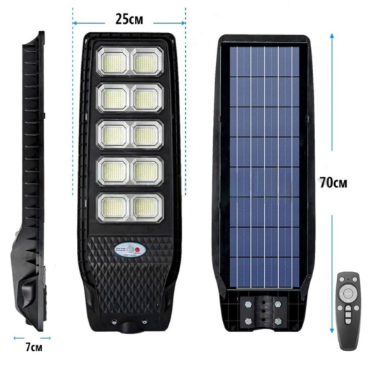 Интегрирано соларно осветление с LED панел и вграден високоефективен поликристален соларен панел с акумулаторна батерия. Мощна и практична улична соларна лампа, идеална за осветление на дворове, алеи, паркинги, градини и други външни пространства. Работи изцяло със слънчева енергия, без нужда от кабели и електрическо захранване. Благодарение на вградената литиево-йонна батерия при пълна липса на слънчева светлина лампата може да свети до 24 часа в пестящ режим. Изключително лесна за монтаж, може да се постави както на различни видове стълбове, така и на стена. През деня високоефективният слънчев панел събира енергия от слънцето и я съхранява в литиева батерия. През нощта мощният светодиод автоматично ще се включи, за да осигури светлина. След 20 секунди или когато движението вече не е открито, светлината намалява, за да спести енергия.